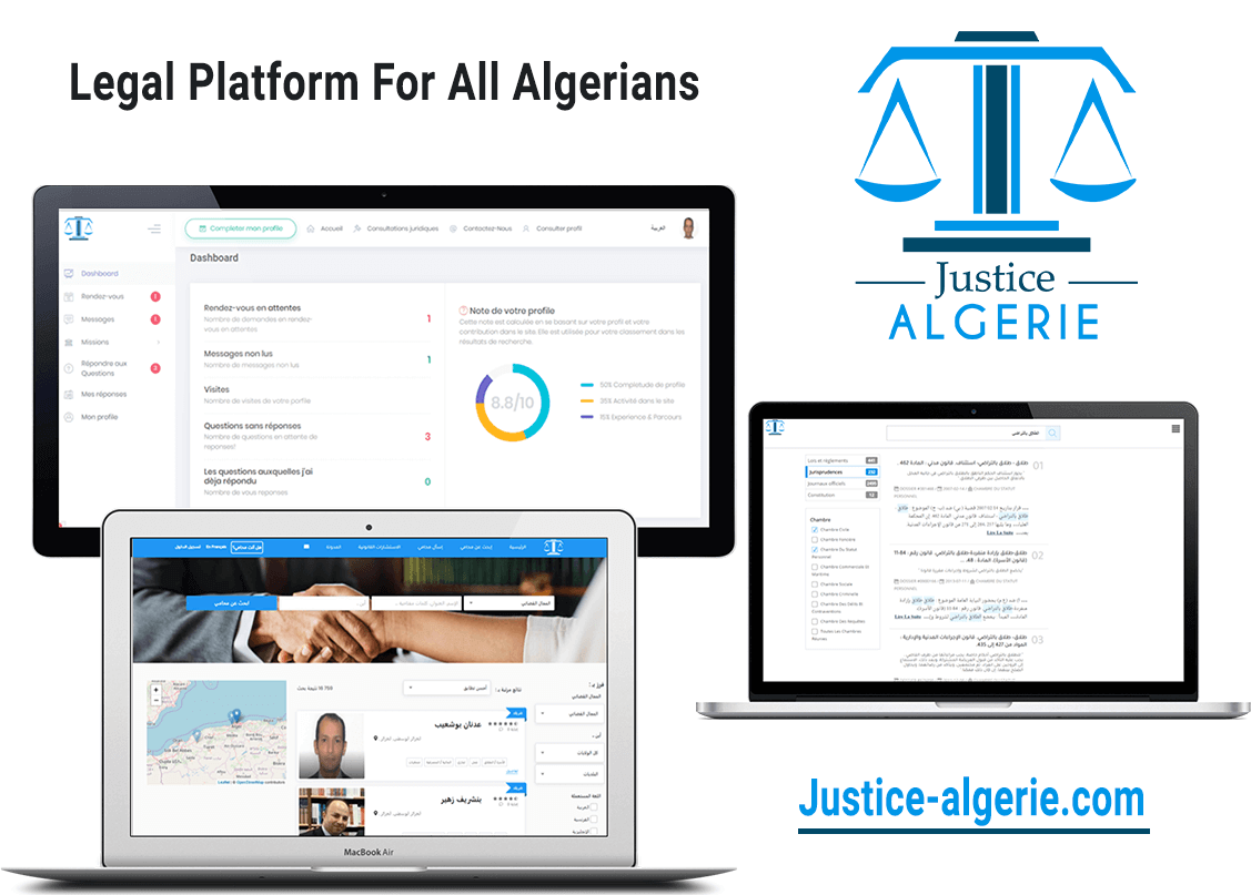 "Justice Algérie" platform (justice-algerie.com) contains a repository of Algerian lawyers that allow users ask for legal advice and communicate with lawyers.